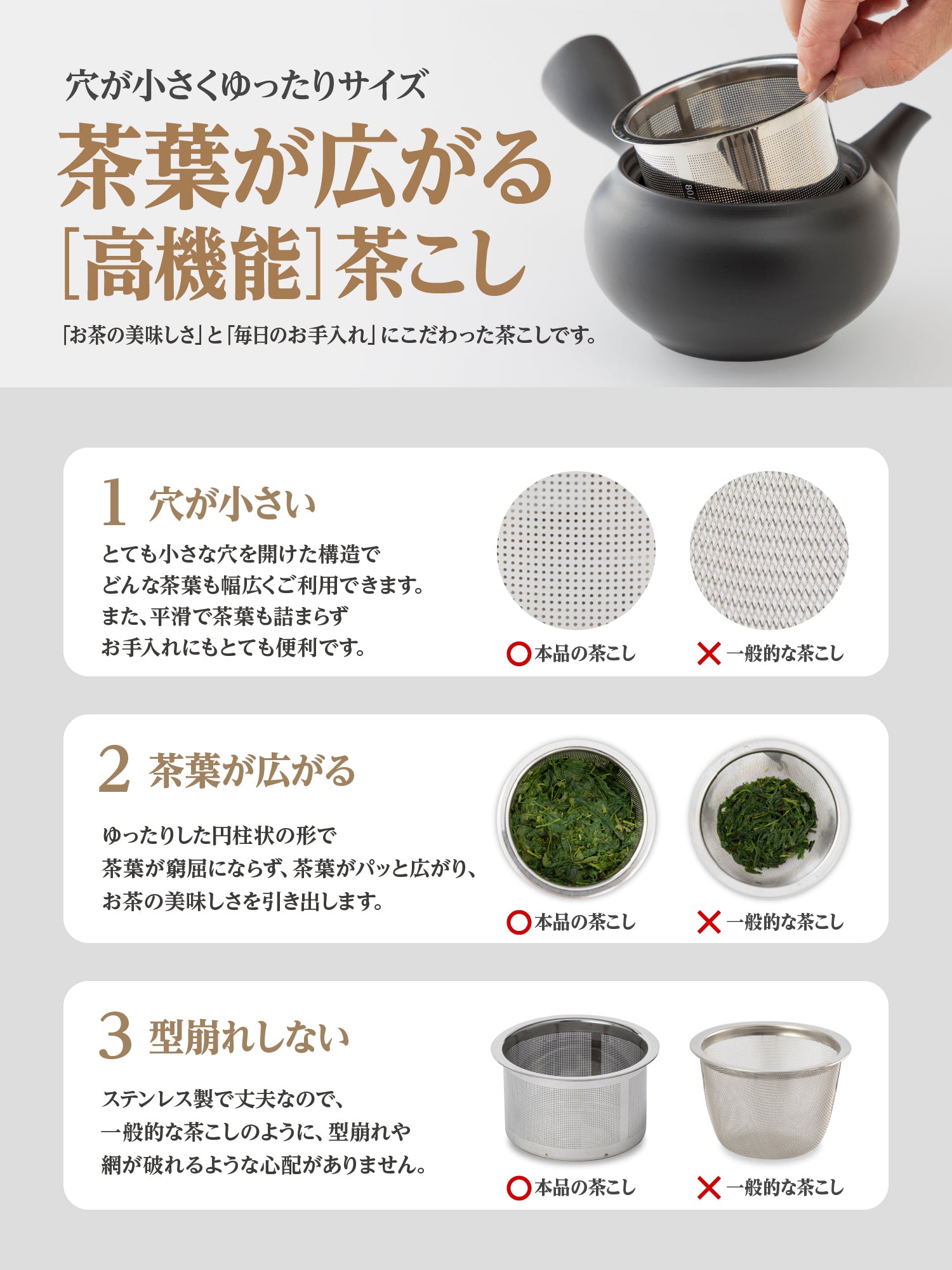 - This tea strainer was designed with a focus on "taste of tea" and "daily care."