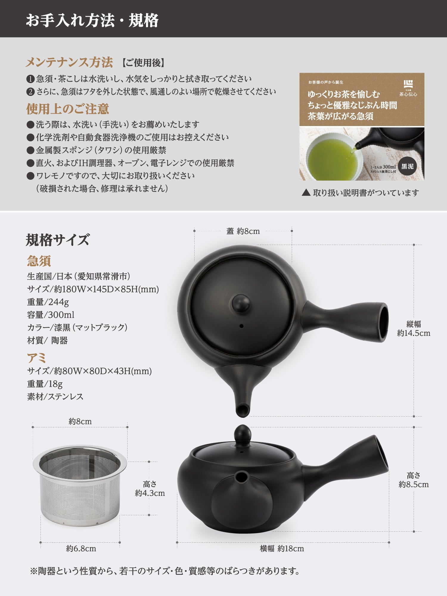 - Made by a teapot specialist in Tokoname City, Aichi Prefecture, a city famous for its teapots.